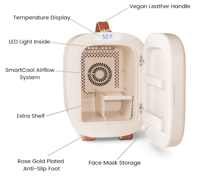 - PROFESSIONAL BEAUTY FRIDGE: The Qubi mini fridge is designed for your skincare and cosmetics. There is room for each of your skin care product. Any temperature-sensitive skincare products can be stored in this beauty fridge.