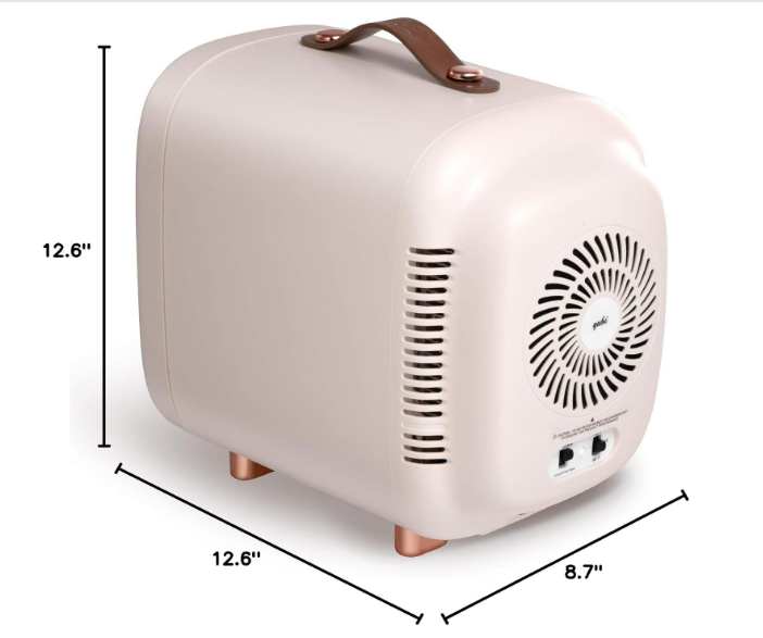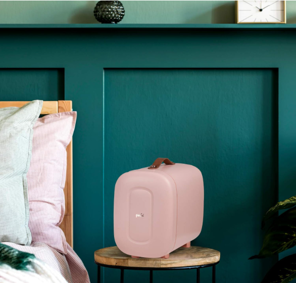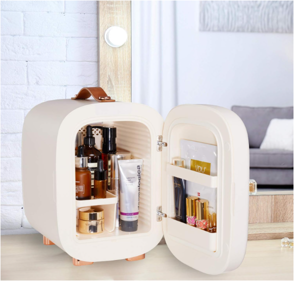 - STATE OF ART LOOKING: This beautifully designed Qubi cosmetic fridge will be a perfect fit for your makeup desk. We used the best material and coating finish to make sure your expensive skincare products feel like live in a villa. There are two colors choices, a pink mini fridge, or white mini fridge.